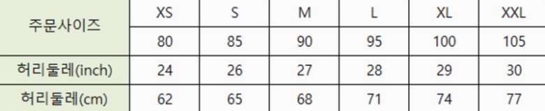 쇼핑몰 상세 페이지에 있는 사이즈표를 보면 보통 XS, S, M 같은 주문 사이즈와 함께 허리둘레가 인치(inch)와 센티미터(cm)로 나와 있어요. 예를 들어 S 사이즈는 허리 26인치, 약 65cm에 해당한다는 걸 알 수 있죠. 브랜드마다 기준이 조금씩 다르기 때문에, 옷을 사기 전에는 반드시 해당 브랜드의 사이즈표를 확인하는 습관을 들이는 게 좋아요.